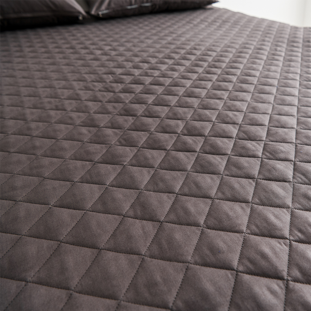 - 다이아몬드 누비와 산뜻하고 청량한 컬러로 고급스러운 침실 분위기를 만드는 디자인.