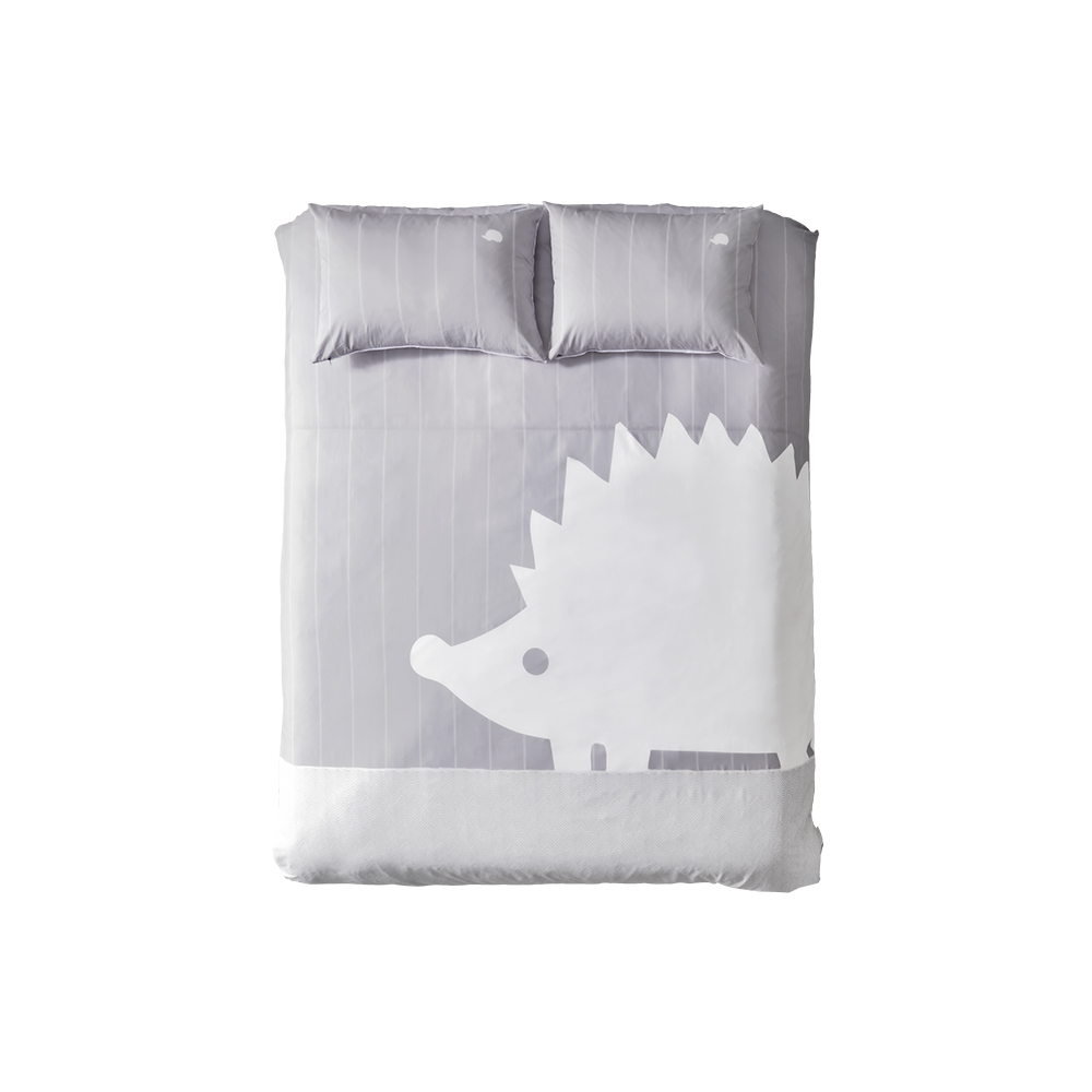 - 톡톡 튀는 옐로우, 차분한 쿨 그레이 컬러, 유니크한 큰 고슴도치가 프린트 된 DTP 전장 디